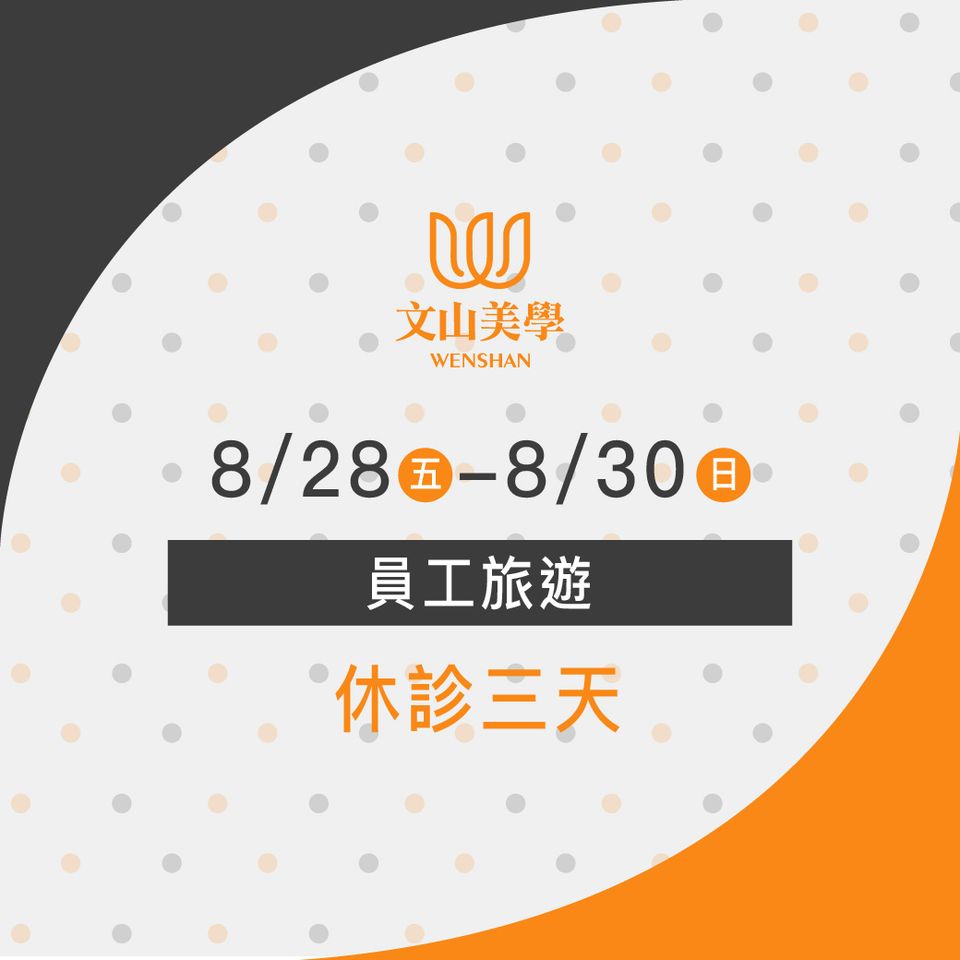 【休診公告】8/28(五)~8/30(日)員工旅遊休診三天