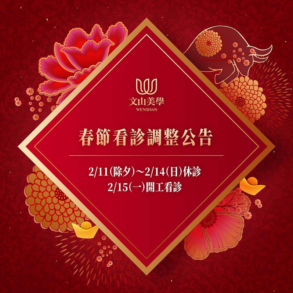 【春節營業時間公吿】2/11(週四 除夕)~2/14(週日 初三)休診2/15(週一 初四)開工看診