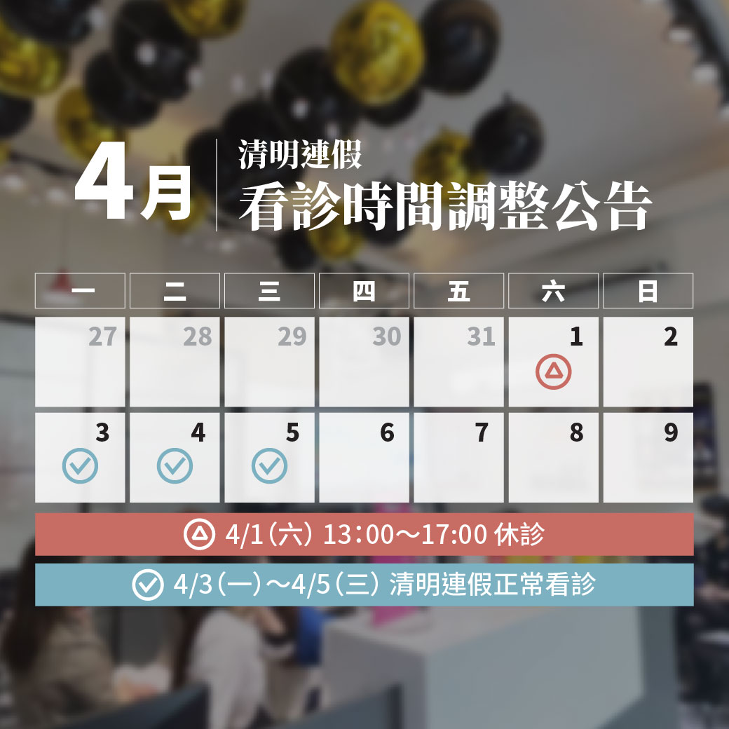 4/1(六)『休診公告』下午13:00~17:00休診