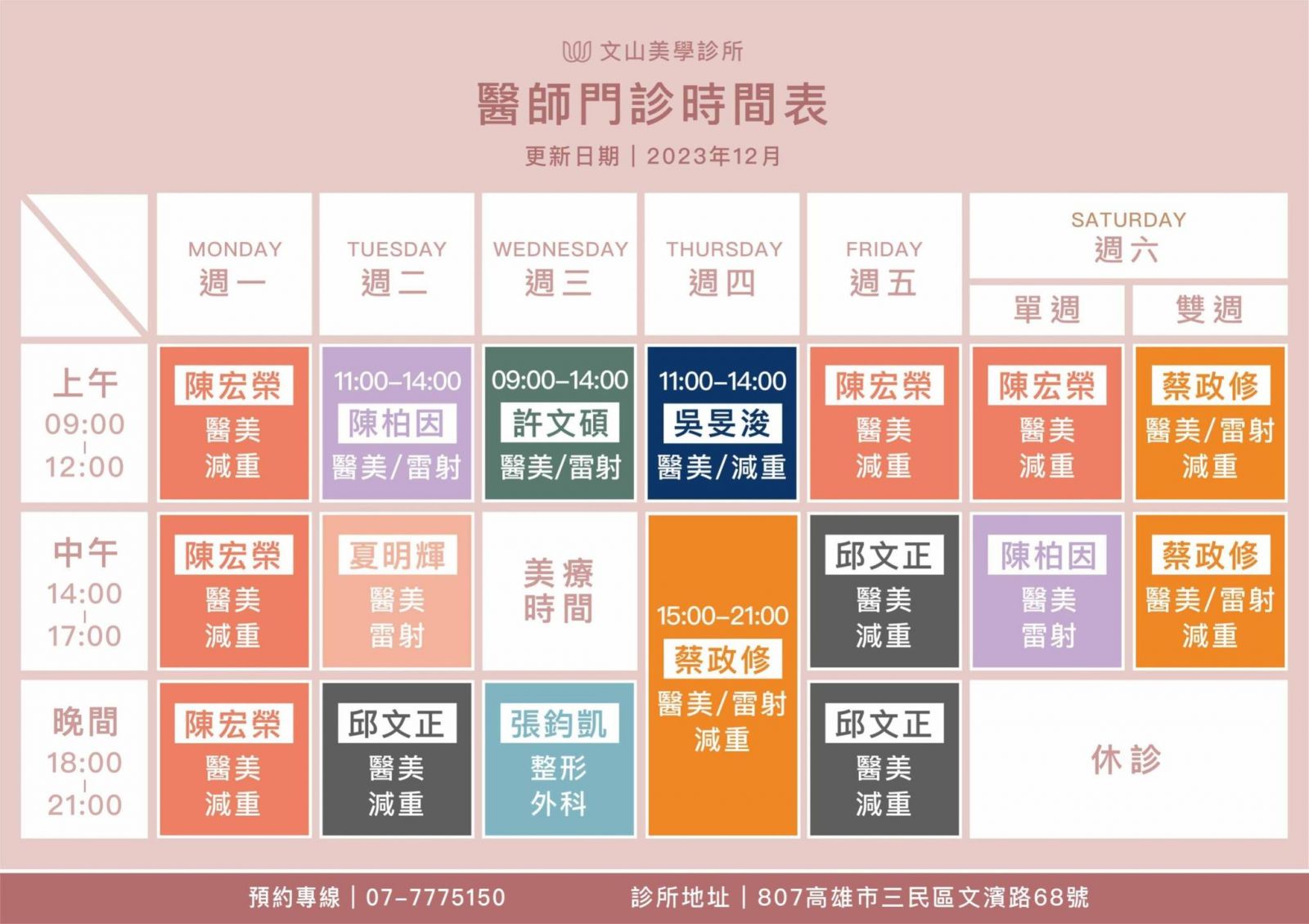 2024門診時刻表更新 歡迎線上預約