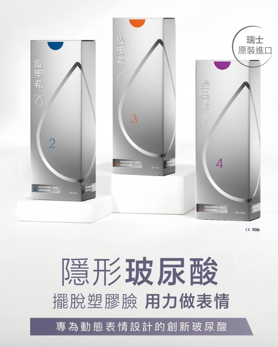 最新第三代的新型玻尿酸於2017年通過歐盟CE及美國FDA認證,歐洲銷量第一的隱形玻尿酸 『緹奧希』。