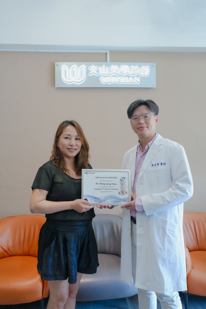 文山美學診所醫師榮獲原廠「索夫波®(Sofwave)臨床認證醫師」資格認證,代表醫師在非侵入式音波拉提領域具備高度專業知識與臨床實作經驗,能為您提供最安全、有效、且客製化的治療方案。