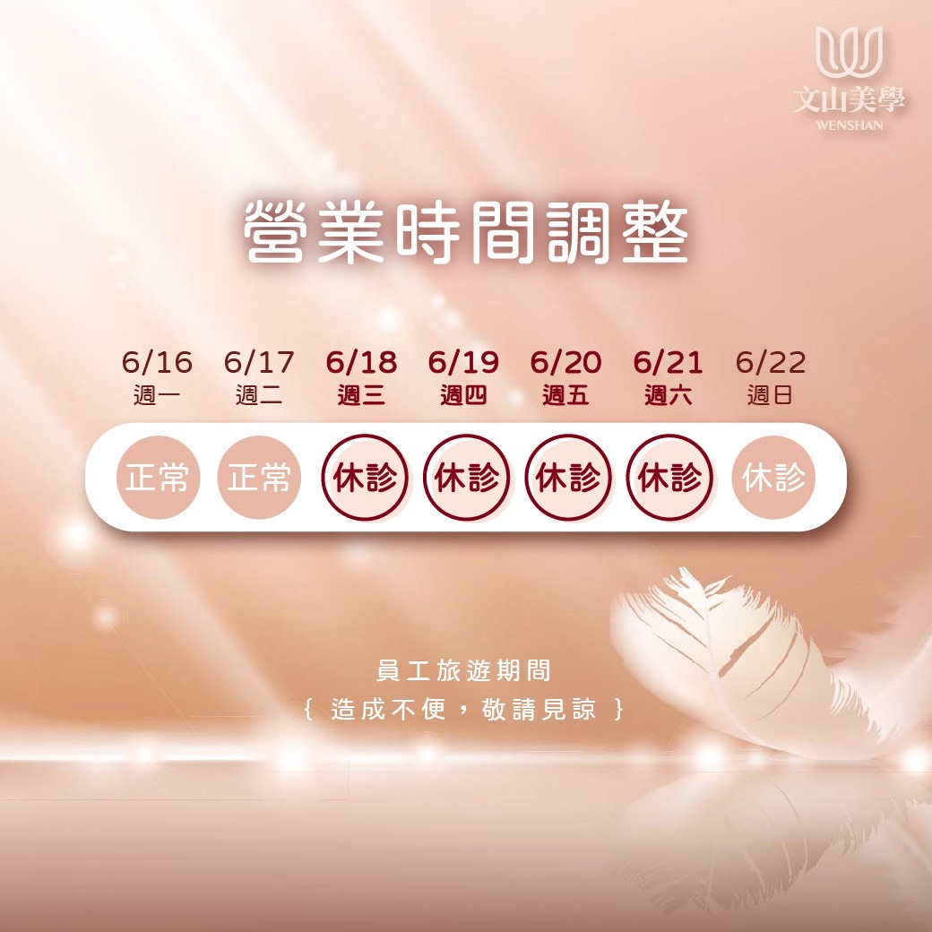 6/18(三)~21(六)文山美學員工旅遊休診四天