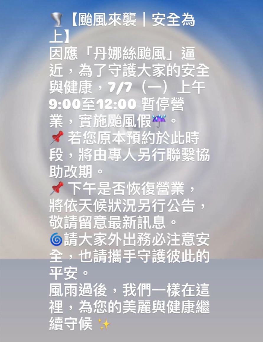 7/ 7 ( 一 ) 9:00至12:00實施颱風假暫停營業