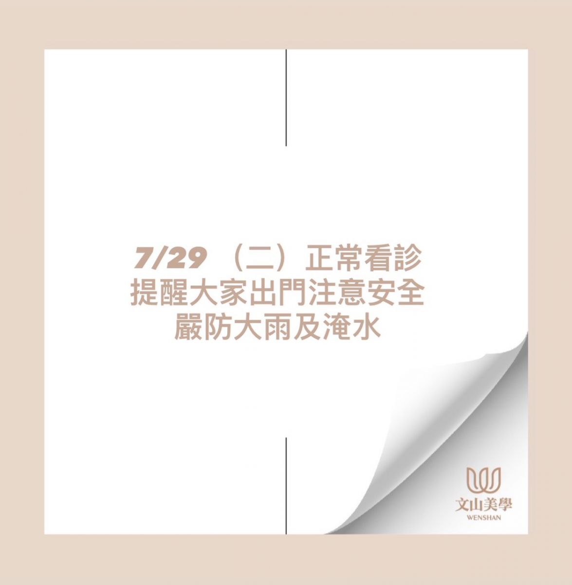 文山美學診所 7/29(二)正常看診