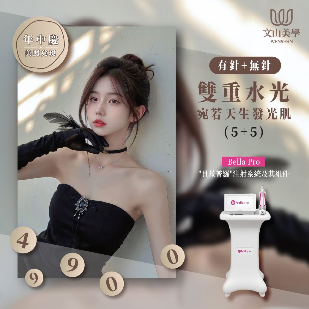 【雙重水光療程】結合「有針」與「無針」,一次滿足深層補水與表層亮澤的雙重需求,讓肌膚宛若天生就會發光。