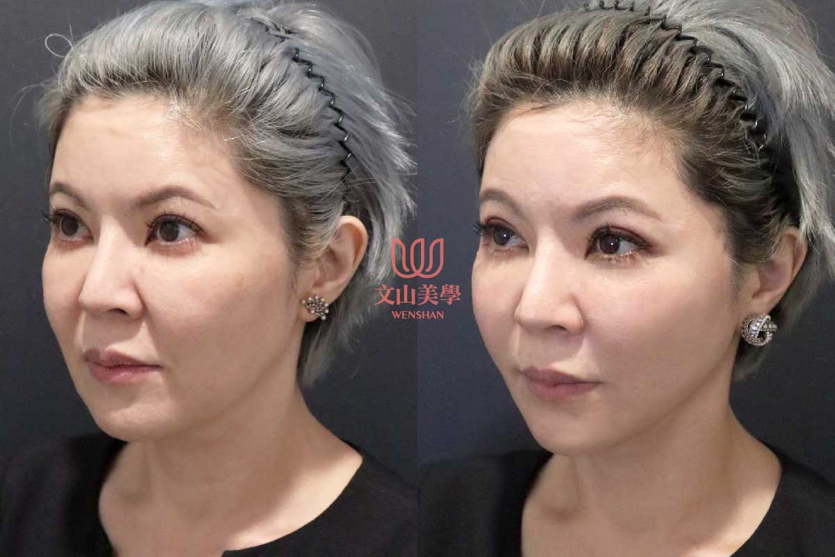 可以通過適度的拉提線固定技術將下垂部位提升+微量填充