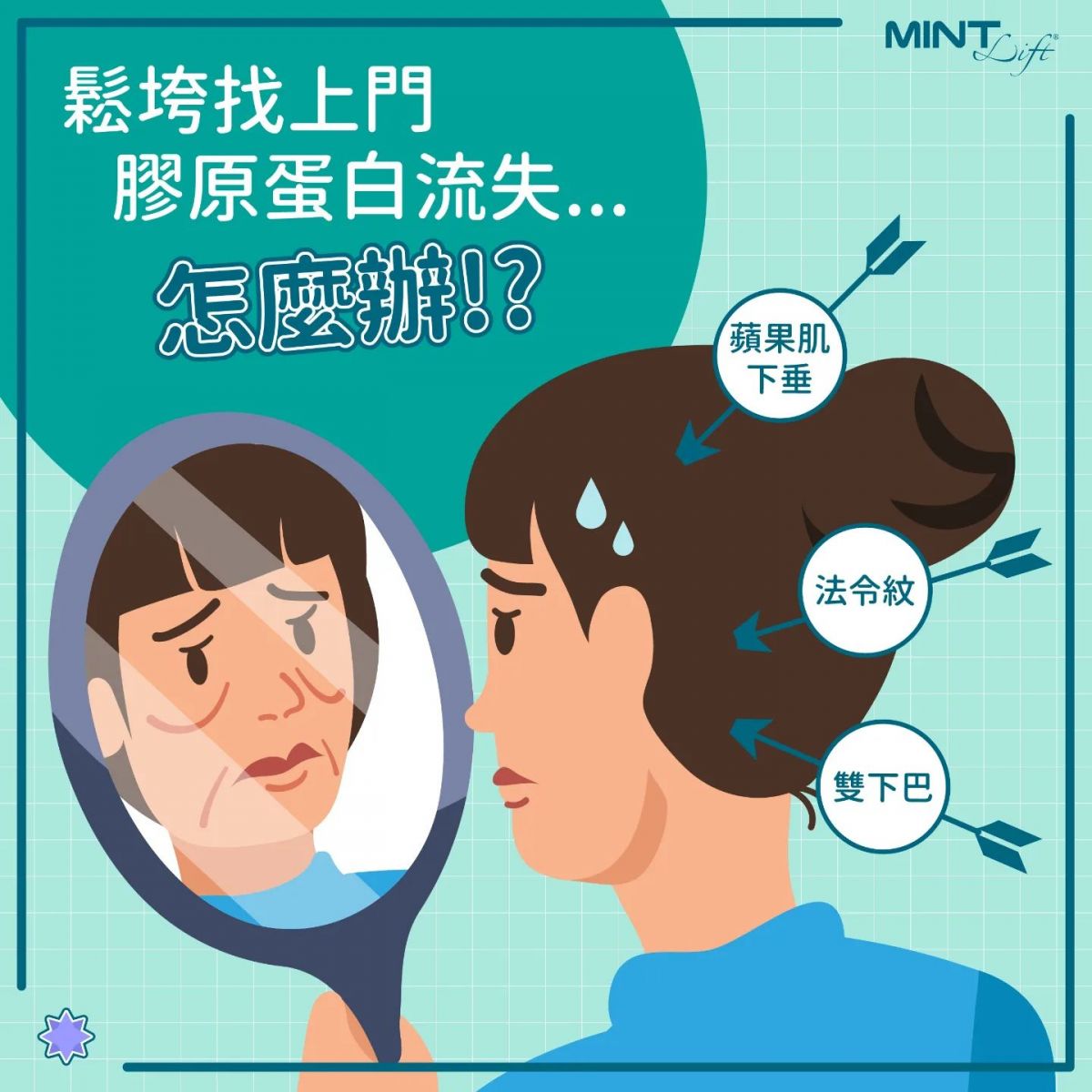 嘴角周圍的表情肌肉會因為長時間的大笑以及老化而產生皺紋,而這個部位即使只有一點點的小細紋,都會讓視覺年齡至少增加5歲!