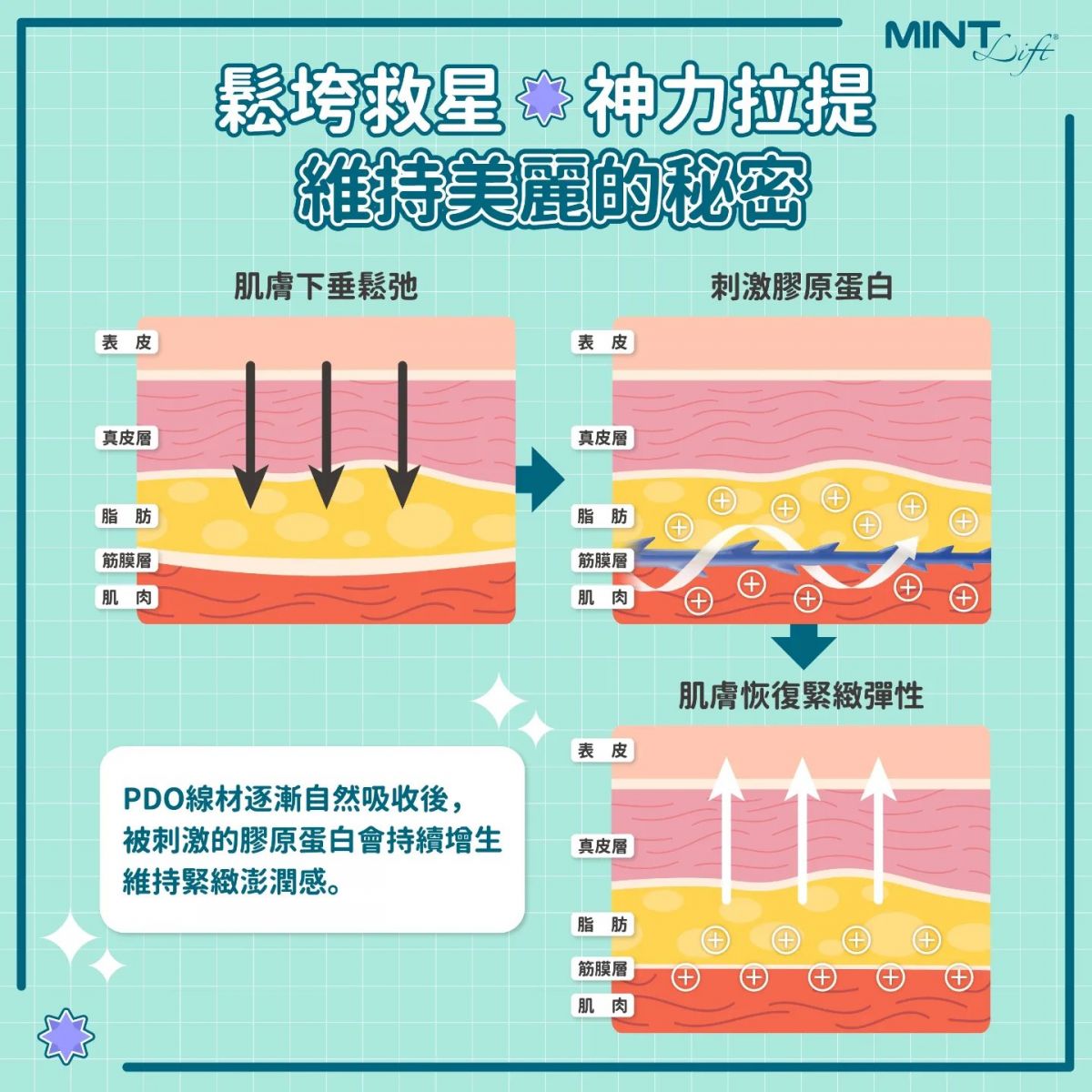 韓士秘特拉提線 - MINT LIFT 神力拉提埋線拉提原理: