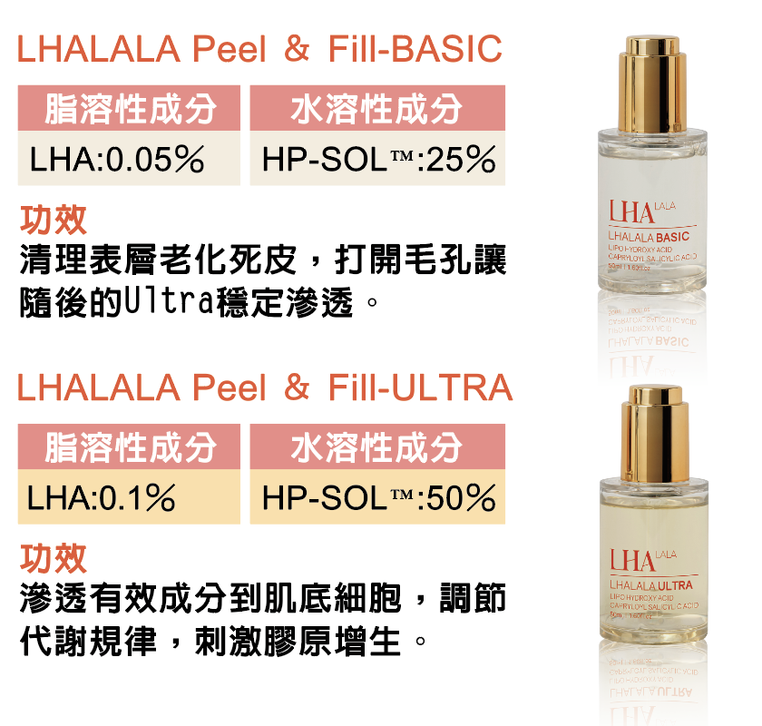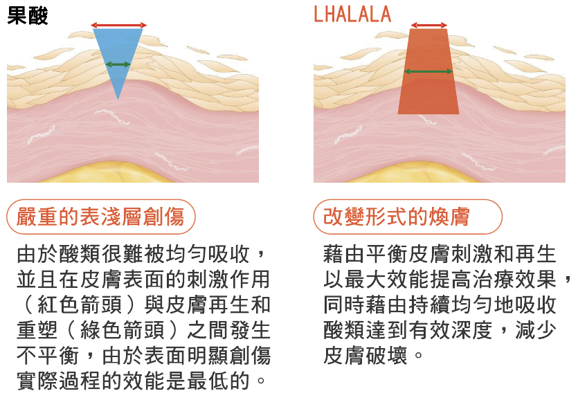 BASIC表皮層煥膚+ULTRA中皮層再生兩劑組成。