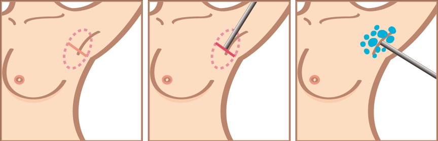使用特殊的螺旋/旋轉刮刀,左右各別開口約1cm,將螺旋刮刀深入皮下組織後將真皮層中的頂漿腺刮除並取出。