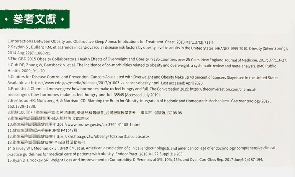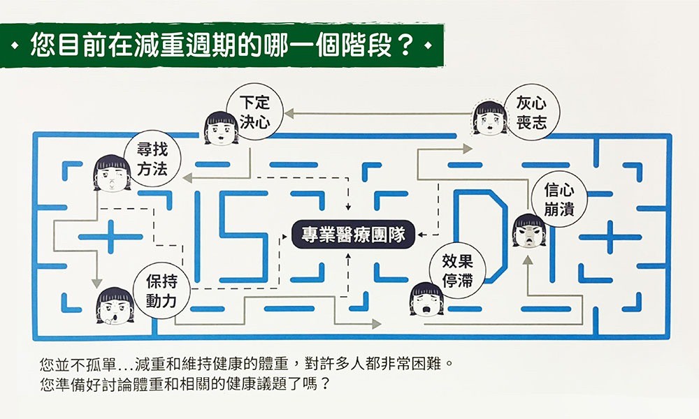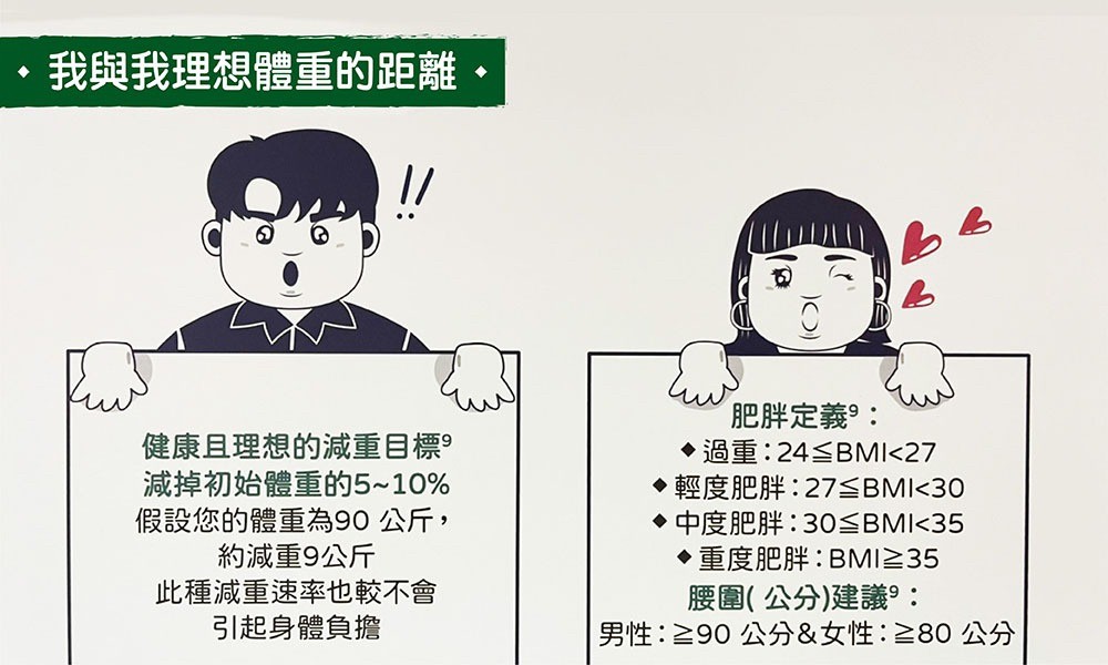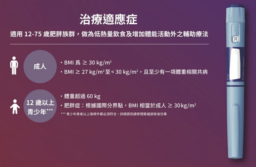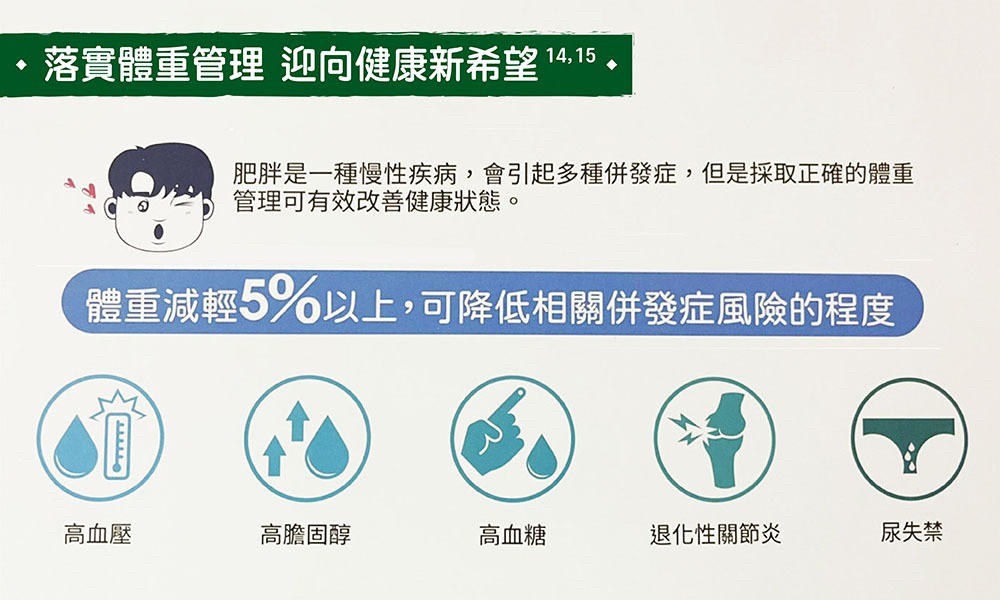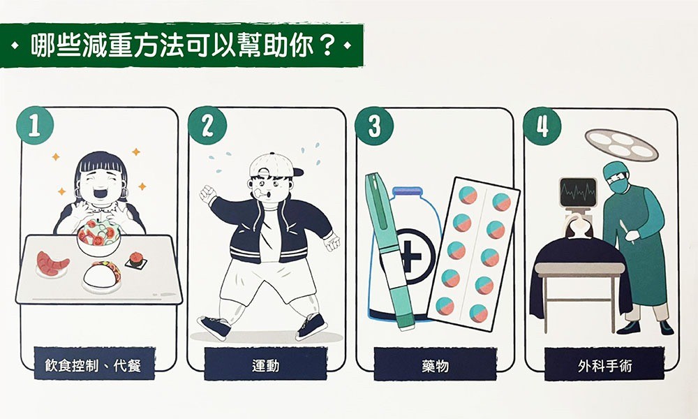 * 藥物處方─根據藥物之適應症及禁忌症,評估病患是否需要且適合使用減重藥物;目前合法的減重藥物健保並不給付,需自費處方。此外,對發現已有慢性疾病之患者,則將開立適當之治療藥物。