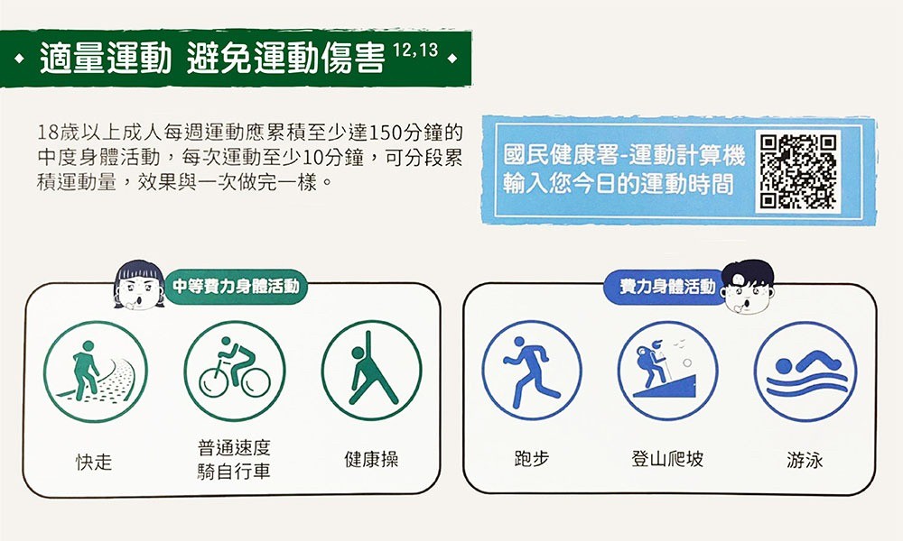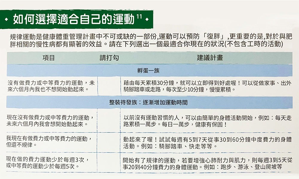 * 運動建議─根據個人健康狀況與生活習慣,建議適當之運動方式及強度。