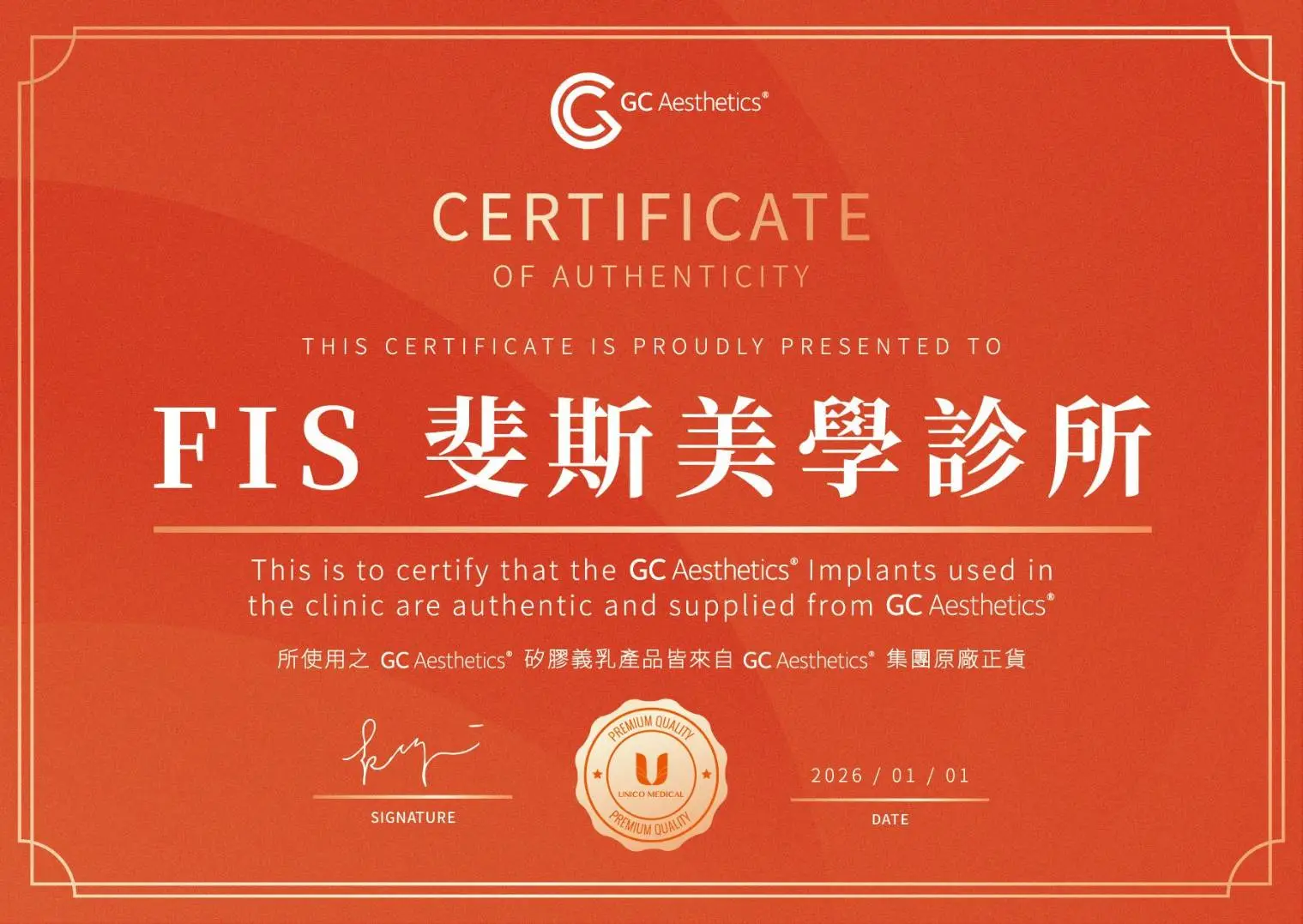 FIS斐斯美學診所為GC Aesthetics珍珠波/盈波原廠認證診所