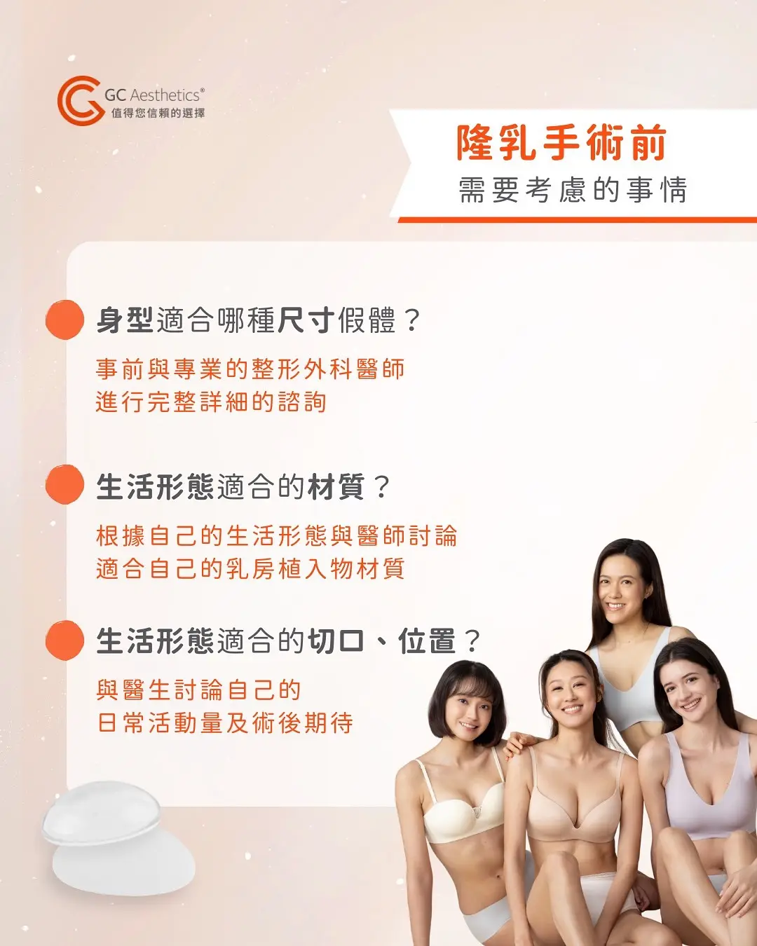 gcaesthetics #珍珠波 #盈波 #光滑面 #假體 #隆乳 #值得您信賴的選擇 #莢膜攣縮 #術後照顧 #霧光滑面
