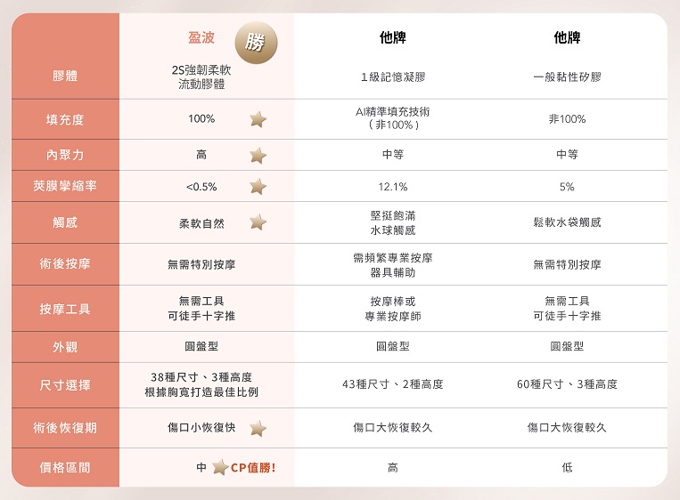 建議選擇具有高彈性外殼的假體,提升植入物的穩定性。讓你在舒適中安心擁有自然曲線。