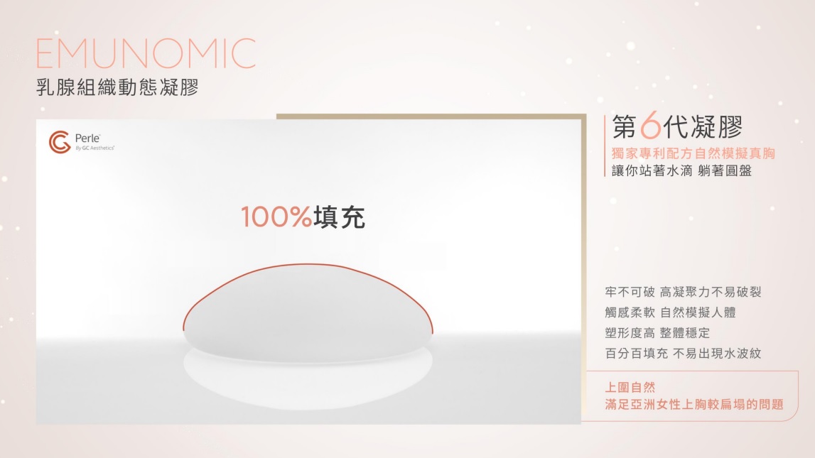珍珠波隆乳PERLE™ 獨家專利配方第6代凝膠 自然胸型 讓妳站著水滴躺著圓盤