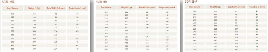 盈波有一系列根據體積 (重量) 或底座寬度區分的型材為外科醫生和患者提供了更多的選擇。