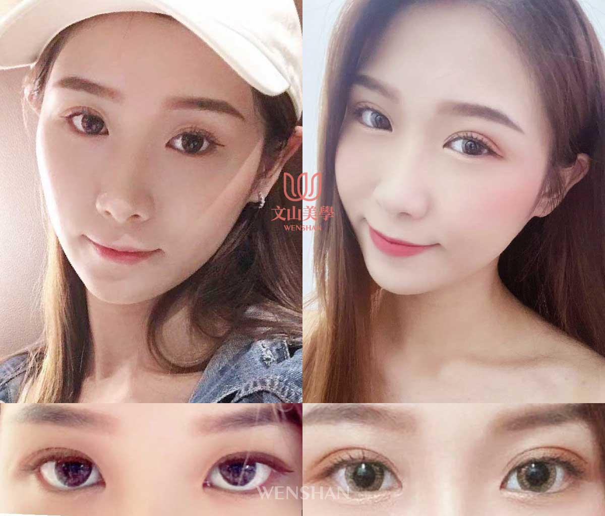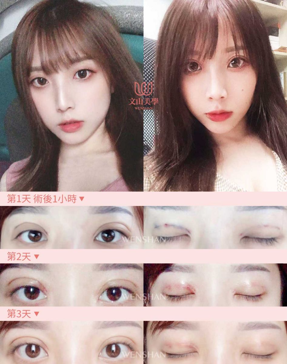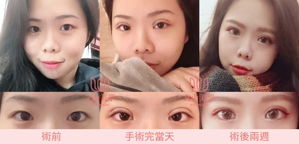 仿間大都流行:縫式雙眼皮、半開割式雙眼皮、割式雙眼皮、日式訂書針縫法、提眉手術、提眼肌、眼袋等消除。其中雙眼皮是文山美學最自豪的技術。