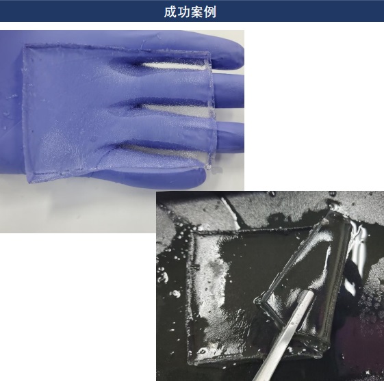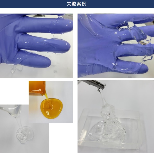 以下照片可以確認交聯的成功和失敗事例。交聯工藝是使液態HA成為固體型態的重要工藝之一,交聯劑的使用量、時間和溫度對品質影響很大。