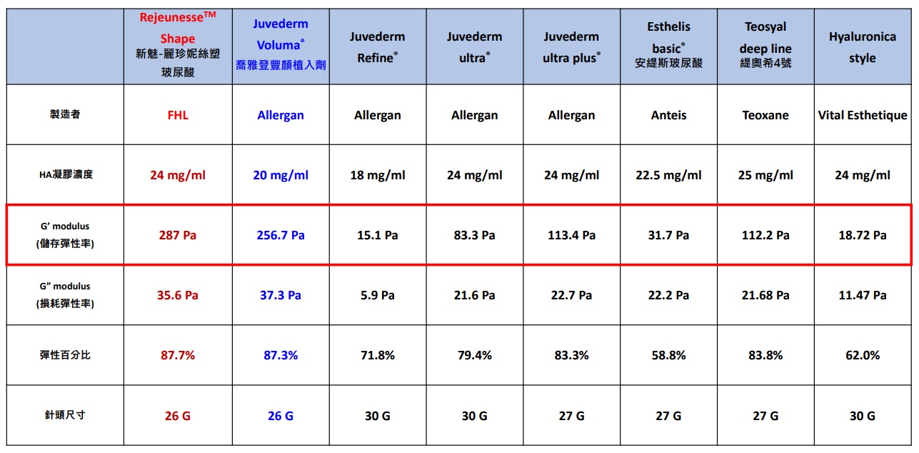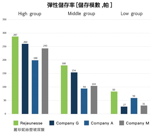 我們的三種單相凝膠型HA的區別在於儲能模量和彈性值;這三個產品都能表現出與競爭對手相似或優於競爭對手的黏彈性