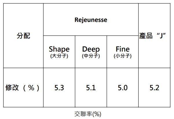 Rejeunesse 的5.0-5.3% 交聯率相當於產品 J 的 5.2%