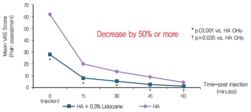 含有 0.3% 利多卡因的 HA 填充劑可緩解注射期間和注射後的疼痛