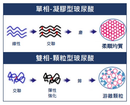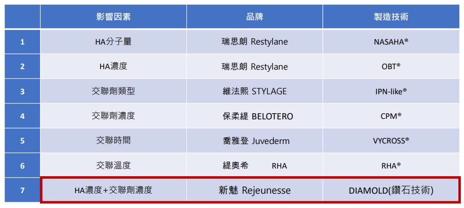 再有決定透明質酸黏性黏度和彈性的交聯過程是由「透明質酸的分子量和濃度,交聯劑的種類和濃度,還有交聯溫度和時間」決定的。