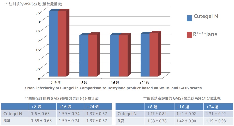 珂蒂婕玻尿酸 Cutegel N 之有效性 & 安全性經臨床實證與R牌比較皆無顯著差異