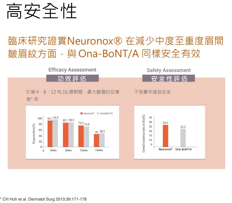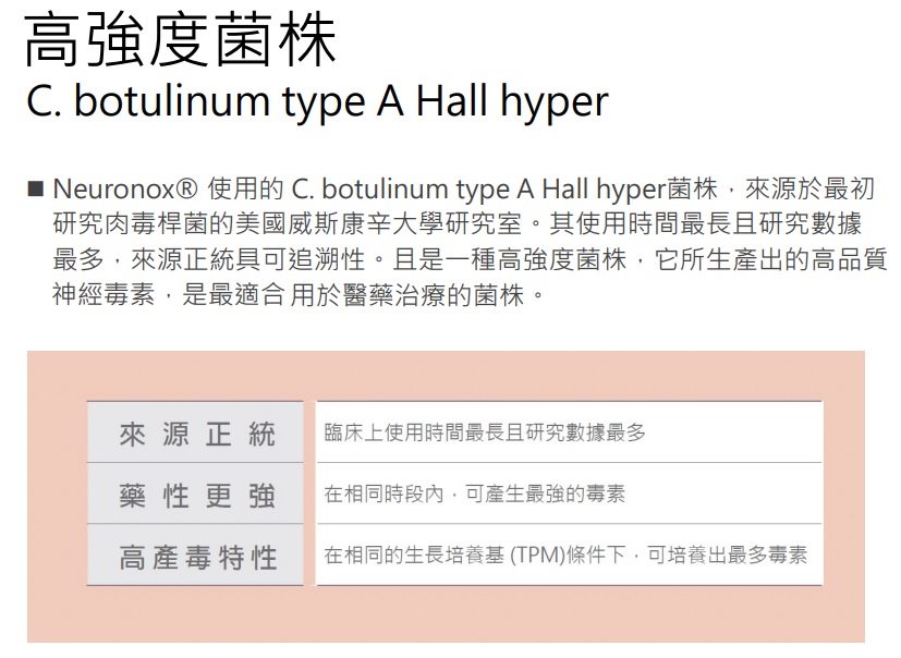 A:就 Neuronox ®的成份-肉毒桿菌而言,能夠作用於肌肉、達到肌肉放鬆及減少腺體分泌之用。