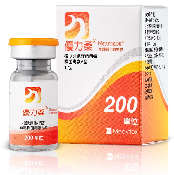 它是由肉毒桿菌所分泌、純化萃取而成的蛋白質,經由抑制神經末梢訊息釋放,達到放鬆肌肉、減少肌肉過度活躍、拉扯。使皮膚恢復平滑,並且預防皮膚產生新的細紋皺紋。知名韓星孫藝珍愛用的韓國醫美大廠「Medytox美德妥」所推出的肉毒桿菌素產品。