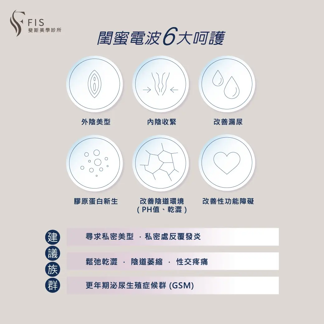 私密保養不該是難以啟齒的話題,而是每位女性都值得擁有的日常照顧。由女性醫師團隊親自規劃的閨蜜電波療程,運用360°溫和電波科技,幫助改善鬆弛、乾澀與私密不適,喚醒彈性與健康狀態。