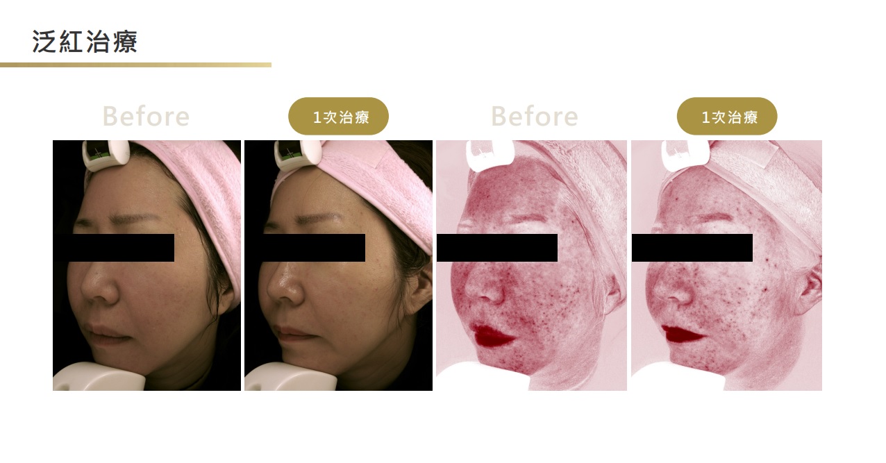 A:術後一次即可見皮膚亮度與細緻度提升。若為輕度肝斑、酒糟、泛紅患者,平均三次療程效果較明顯,若為較嚴重症狀之患者,平均需多次療程較能有明顯改善。因個人皮膚狀況不同,實際療程需求次數須由專業醫師與諮詢人員評估。