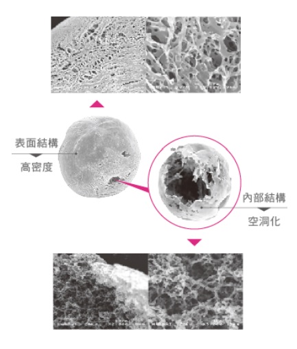 青春再生支架---專利多孔性微球體Microspheres艾麗斯專利之多孔性微球體,可當作肌膚青春再生支架,多孔性結構可以吸引纖維母細胞靠近,誘導膠原蛋白新生於多孔性微球體之間與內部。